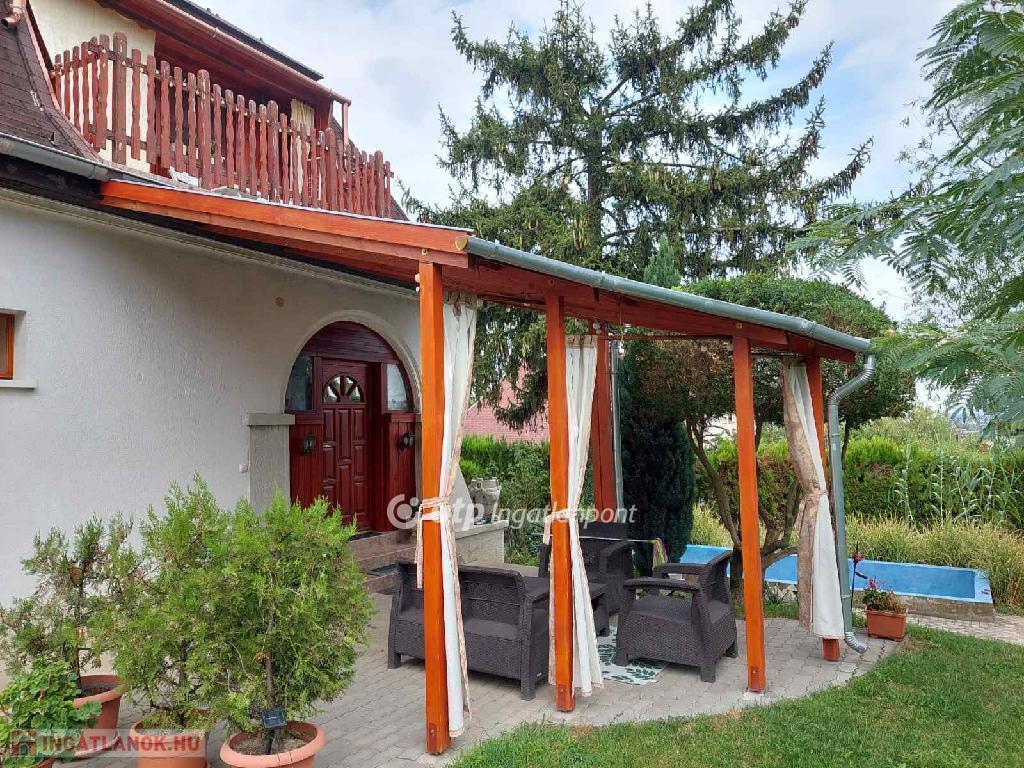 Az ingatlan csendes utcában, csodálatos panorámával rendelkező gondozott, 1042 m2-es összközműves saroktelken helyezkedik el. A nagyobb ház 150 m2-es, 2 szintes, garázsos. A különálló kisebb lakrész 40 m2-es, összkomfortos, kiválóan alkalmas irodának vagy privát rendelőnek, vagy ha valaki idős szülővel vagy felnőtt gyerekkel szeretne egyszerre közel, de mégsem egy fedél alatt élni. Több autó beállására is lehetőség van a szerelőaknás garázsban, az udvaron kialakított fedett kocsibeállóban, továbbá 3-4 autónak van hely az előkertben is. Az ingatlan elhelyezkedése nagyon kedvező, egyik szomszéd sem lát be, teljesen szeparált, nyugodt életet lehet élni.