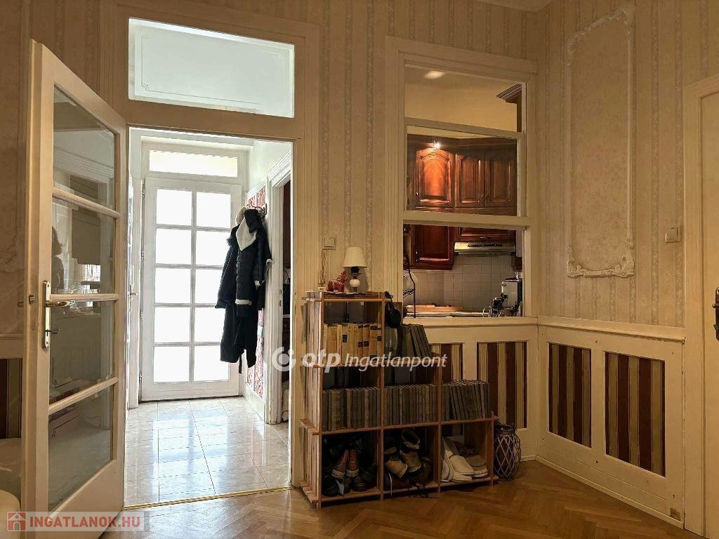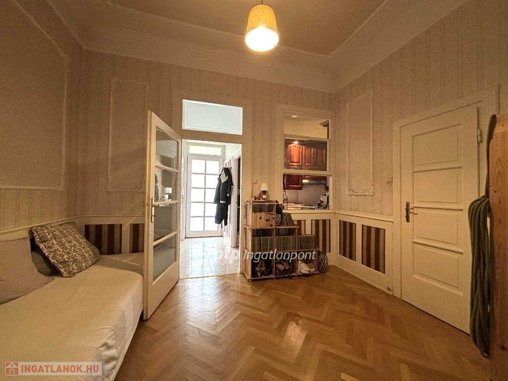 Eladó egy art deco épületben található 1. emeleti, 72 nm, 2 szoba hallos, nagypolgári lakás amit 3 éve a régi stílusjegyeket felidézve újítottak fel. Savmart üvegablakos eredeti nagy ajtók, felcsiszolt parketta bordűrrel, a kor hangulatát visszaadó tapéták, sárgaréz kilincsek, minőségi fa konyhabútor, mind a korabeli kifinomult eleganciát tükrözik vissza. Ugyanakkor a 3x32 Amperes villanyóra vagy a 3 rétegű üveggel felújított ablakok már a mai kor elvárásainak felelnek meg.