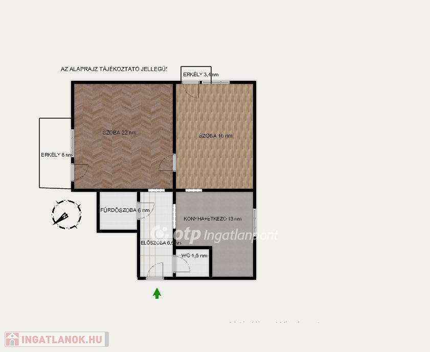 Az ingatlan egy jó állapotú, rendezett társasház első emeletén található. A délnyugati tájolású erkélyről szép kilátás nyílik a kertekre. A két tágas szobával rendelkező ingatlanban mindkét szobához erkély kapcsolódik.