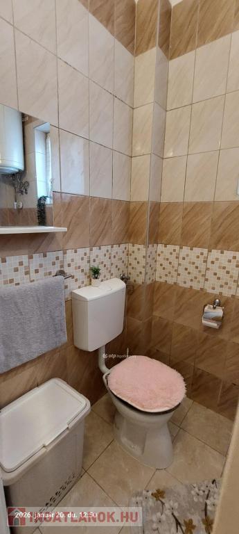 A szobában laminált padló, a többi helyiségben járólap van.