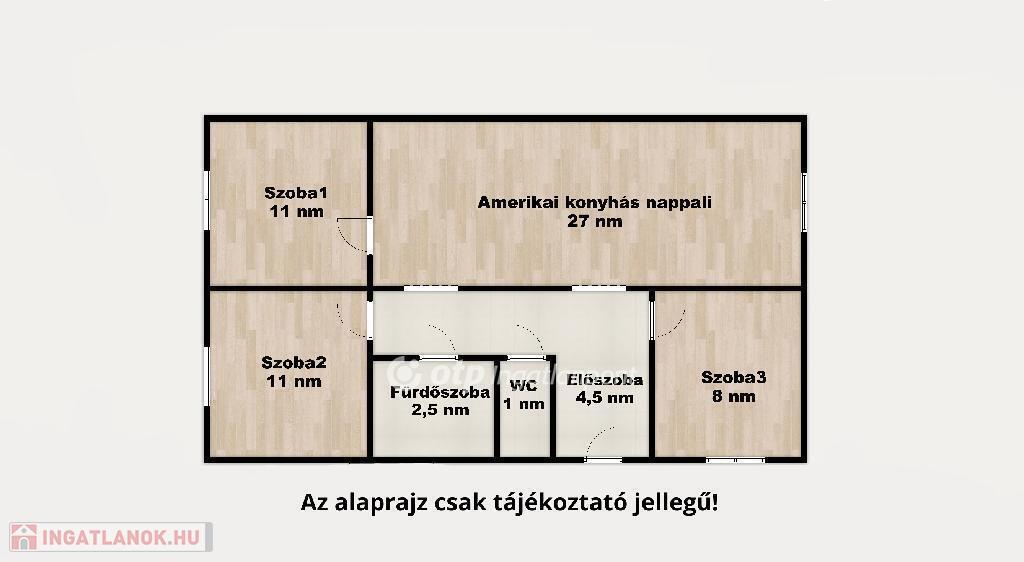A nappali amerikai konyhás kialakítású, világos és barátságos tér, amely ideális központja lehet a mindennapi életnek. A három külön nyíló szoba tökéletes megoldás családok számára, hiszen könnyedén kialakítható gyerekszoba, dolgozószoba vagy vendégszoba is. A fürdőszoba kádas kialakítású, a WC külön helyiségben található, amely szintén praktikus, családbarát megoldás.
